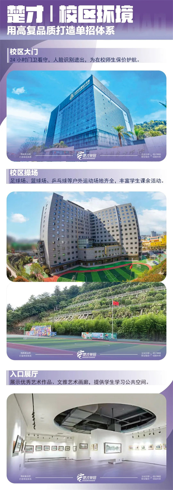 - 校园环境:校园环境优美宁静,园林式布局营造出舒适的学习与生活空间。教学区域配备先进的智慧教室,包括多媒体教室、专业实训室等,满足各专业教学需求。运动生活区设有篮球场等运动场地,以及校园超市、校园氧吧等休闲设施,丰富学生课余生活。