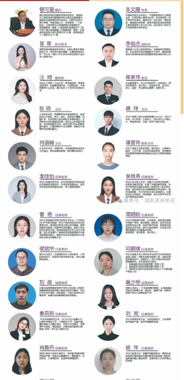 湖南潇湘单招基地拥有一支实力强劲的师资队伍。其团队规模近 200 人,包含 60 余名专职教师及 100 余名高校名师。