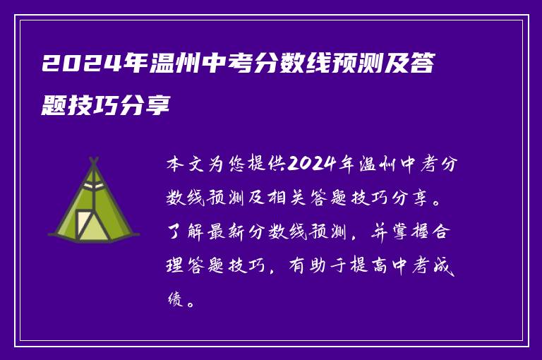 提供2024年温州中考分数线预测及相关答题技巧分享。了解最新分数线预测,并掌握合理答题技巧,有助于提高中考成绩。