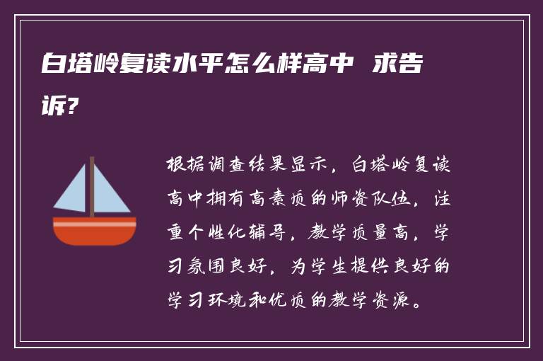近年来,白塔岭复读高中备受关注,许多家长和学生对于该校的复读水平都非常关心。那么,白塔岭复读水平到底怎么样呢?我们进行了调查,以下是我们的调查报告。
