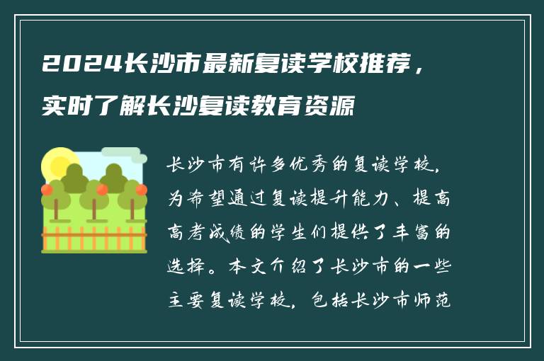 长沙作为湖南省的省会,教育资源丰富,复读学校选择多样化。许多知名学校都开设有复读班,为希望通过复读提升自身能力,提高高考成绩的学生们提供了丰富的选择。以下是长沙市的一些主要复读学校,供学生及家长参考: