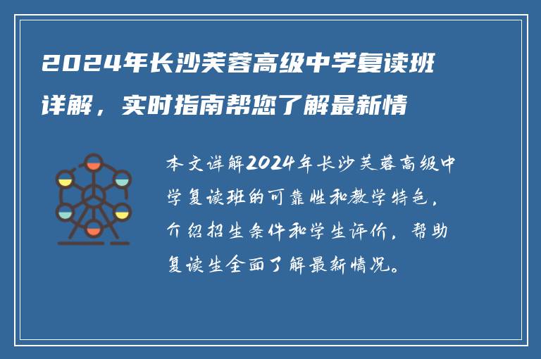 长沙芙蓉高级中学因其卓越的教学管理和优异的成绩而成为众多复读生的首选。将详细分析该校复读班的可靠性,介绍其教学特色、招生条件以及学生评价,帮助您全面了解长沙芙蓉高级中学复读班的最新情况。