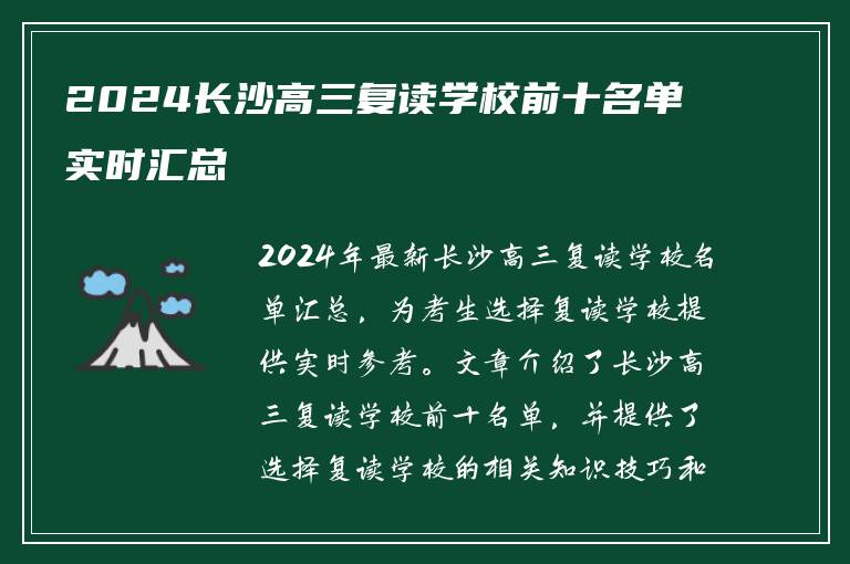 高考是人生一个重要的转折点,高考成绩出来后几家欢喜几家愁,很多考生因为这样或者那样的原因名落孙山,很多考生为了有一个好的前程选择高考复读,选对高考复读学校可以大大提高学习效率,助力高考,长沙高三高考复读学校哪家实力强?小编为您整理了长沙24年最新口碑好的高三高考复读学校名单汇总,为您选择复读学校提供有效参考。