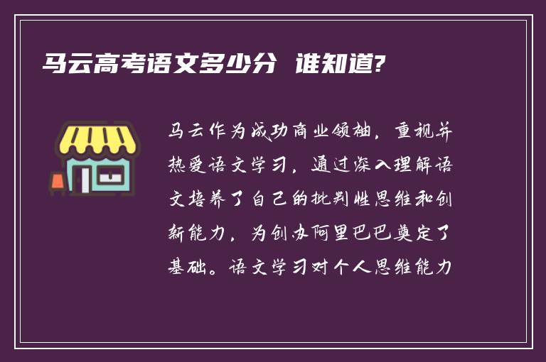 虽然我们无法确认具体的数字,但可以确定的是,马云对语文的重视和热爱。他曾经说过:“读书最重要的是读懂,读懂最重要的是读透。”这句话不仅体现了他对知识的追求,也展现了他对语文学习的态度。