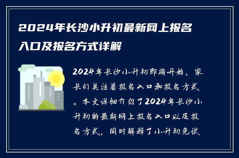 想要进行2024年长沙小升初的网上报名,可以点击这里进入报名入口。