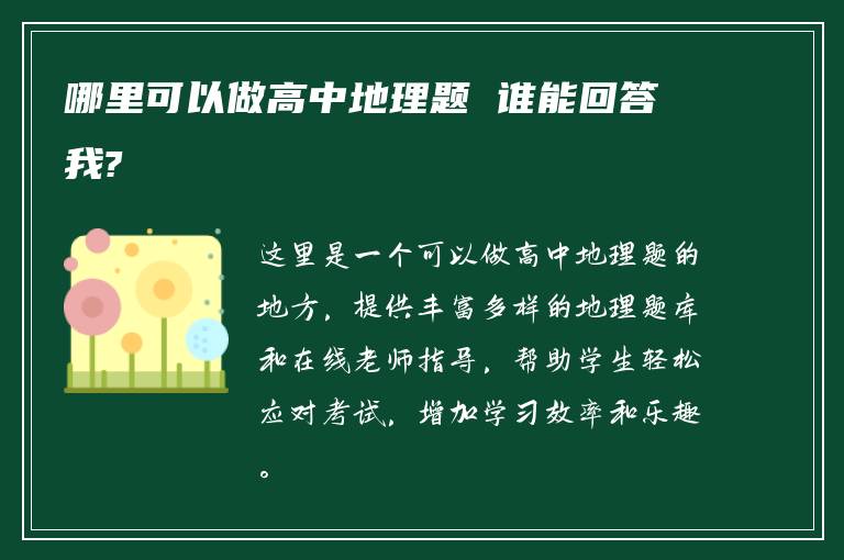 这里是一个可以做高中地理题的地方,提供丰富多样的地理题库和在线老师指导,帮助学生轻松应对考试,增加学习效率和乐趣。...