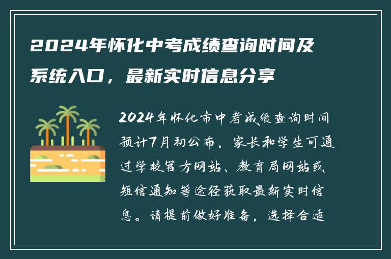 2024年怀化中考成绩查询时间及系统入口,最新实时信息分享