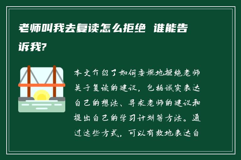 老师叫我去复读怎么拒绝 谁能告诉我?
