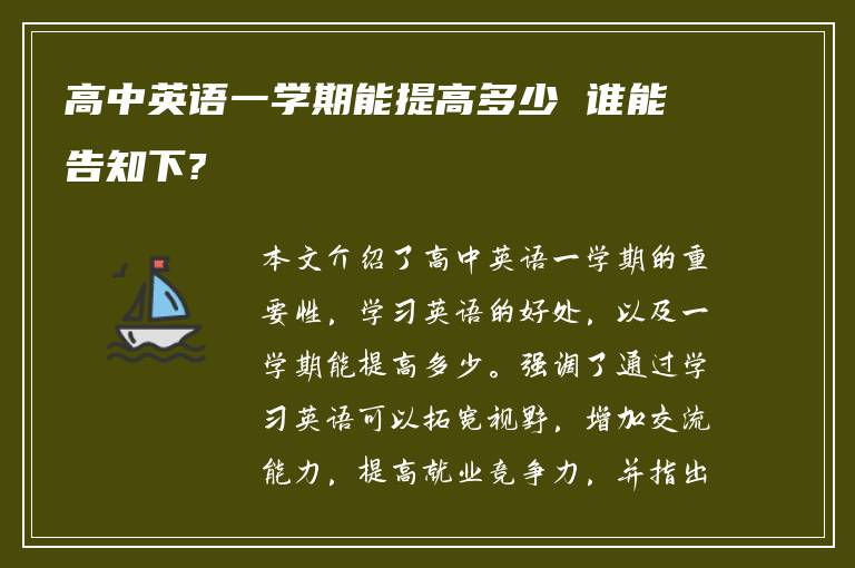 高中英语一学期能提高多少 谁能告知下?