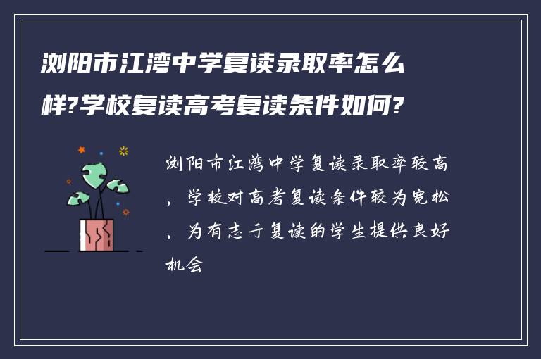 浏阳市江湾中学复读录取率怎么样?学校复读高考复读条件如何? ?
