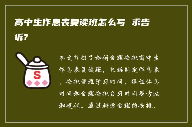 本文介绍了如何合理安排高中生作息表复读班,包括制定作息表、安排课程学习时间、保证休息时间和合理安排自习时间等方法和建议。通过科学合理的安排,可以帮助学生更好地学习和...