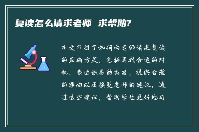 本文介绍了如何向老师请求复读的正确方式,包括寻找合适的时机、表达诚恳的态度、提供合理的理由以及接受老师的建议。通过这些建议,帮助学生更好地与老师沟通,顺利实现复读的目...