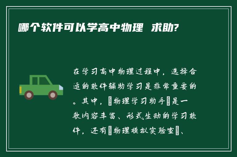 高中物理作为一门重要的学科,在学习过程中常常需要借助一些软件来辅助理解和掌握知识。那么,哪个软件可以帮助学生学习高中物理呢?
