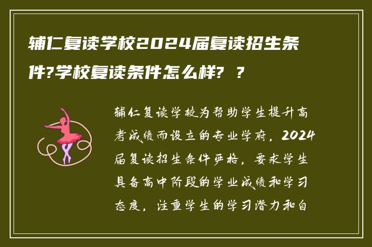 辅仁复读学校是一所致力于帮助学生提升高考成绩的专业学府。对于2024届复读招生条件,学校设定了一系列要求,让我们一起来了解一下。