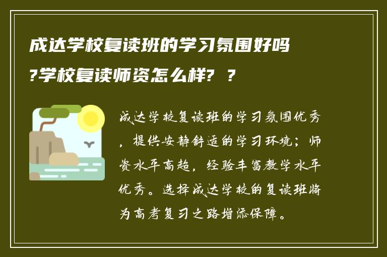 在选择复读学校时,学校的学习氛围和师资是至关重要的考量因素。成达学校的复读班如何?学习氛围好吗?师资水平如何?下面让我们一起来看看。