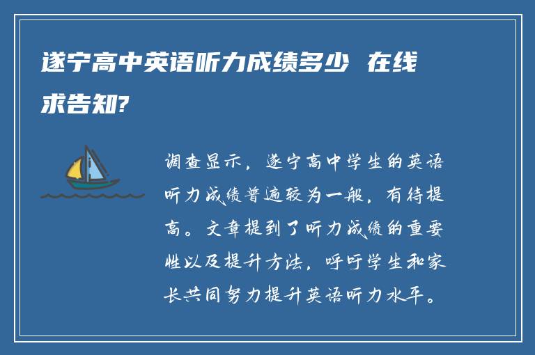 在当今竞争激烈的社会中,英语听力成绩对于遂宁高中学生来说至关重要。通过调查发现,英语听力成绩直接关系到学生的学习成绩和未来的发展。