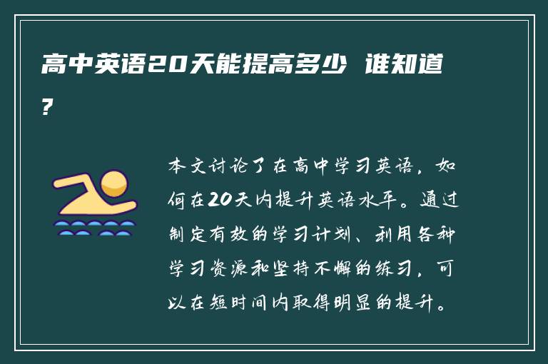 在高中学习英语,很多同学都希望能够在短时间内提高自己的英语水平。那么,究竟高中英语20天能够提升多少呢?