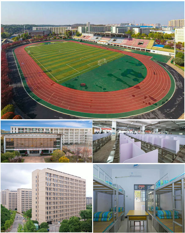 学校坐落于长沙雨花经济开发区核心区域,占地面积 9.1 万平方米,校园环境清幽雅致、设施完备一流 —— 教学楼、实训楼、图书馆、学生公寓错落有致,田径场与体育馆配套齐全,更建有 70 余间高标准专业实训室,为 3000 余名在校学生提供优质的学习与生活环境。